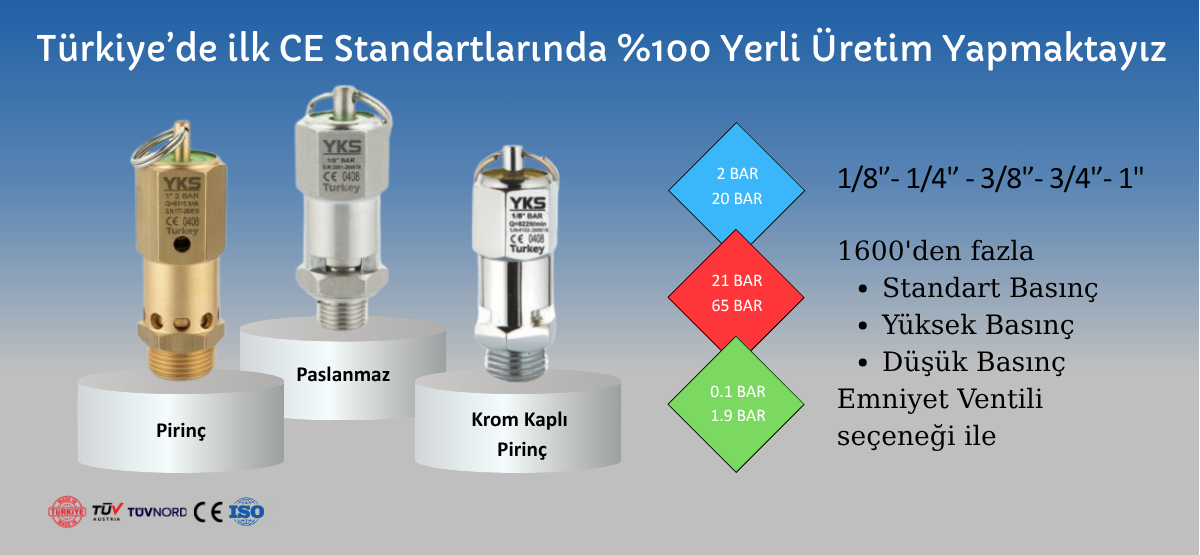 0,1 DAN 65 BARA KADAR TÜM ARA ÖLÇÜLERDE 1/8" - 1/4" - 3/8" - 1/2" - 3/4" - 1" DİŞ ÖLÇÜLERİNDE ÜRETİLEBİLİR.