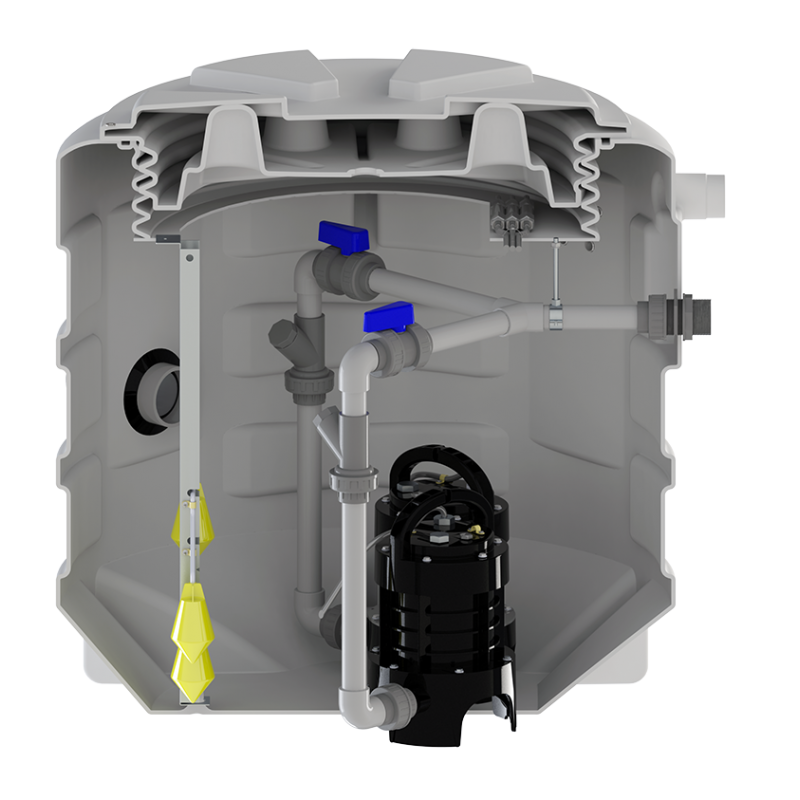 Ticari ve toplu kullanım için zemin altı veya zemin üstü kurulabilen çift pompalı atık su tahliye istasyonu.